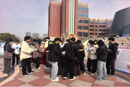 3月26日上午10点,我校联合新郑市水利局,在图书馆前开展以“世界水日”“中国水周”为主题的节水宣传活动,各学院学生代表积极参与。